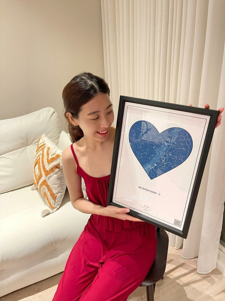 這份星表包含很大數量的高精密度天體位置,星空之憶搭配Google API 使用歐洲太空總署之數據,紀錄每一個獨一無二的記憶瞬間,輸入專屬你的地點與時間,客製化高品質與高磅數印刷裱匡藝術,獻給最重要的她。